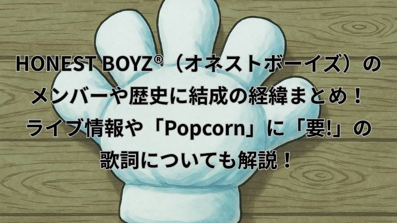 三代目J SOUL BROTHERS HONEST BOYZ®(オネストボーイズ)のメンバーや歴史に結成の経緯まとめ!ライブ情報や「Popcorn」に「要!」の歌詞についても解説! HONEST BOYZ®(オネストボーイズ)のメンバーや結成の経緯を徹底解説!映画『HiGH&LOW THE MOVIE 2 / END OF SKY』挿入歌「要!(よう)」や新曲『Popcorn feat. RIEHATA, 遠藤翼空&山本光汰 from KID PHENOMENON』の魅力、ライブ情報まで詳しく紹介します。 2025.10.08 三代目J SOUL BROTHERS